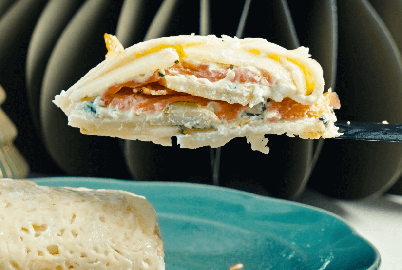 Roulé pommes de terre, courgette, saumon